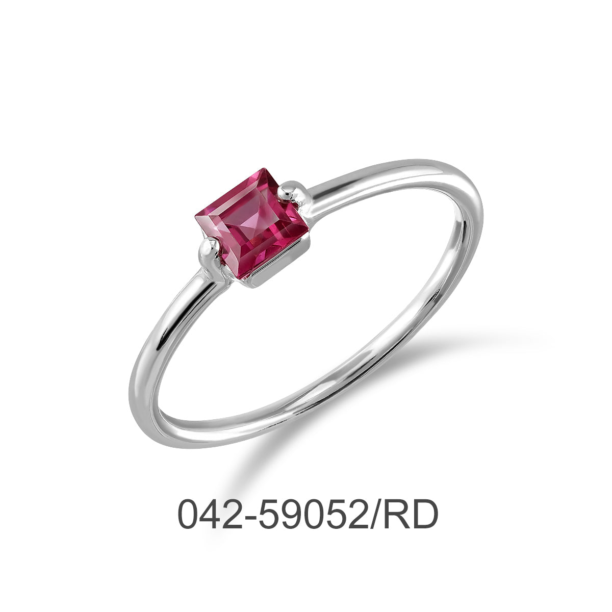 RING SQUARE JULY " RHODOLITE " W/BIRTHSTONE & RHODIUM